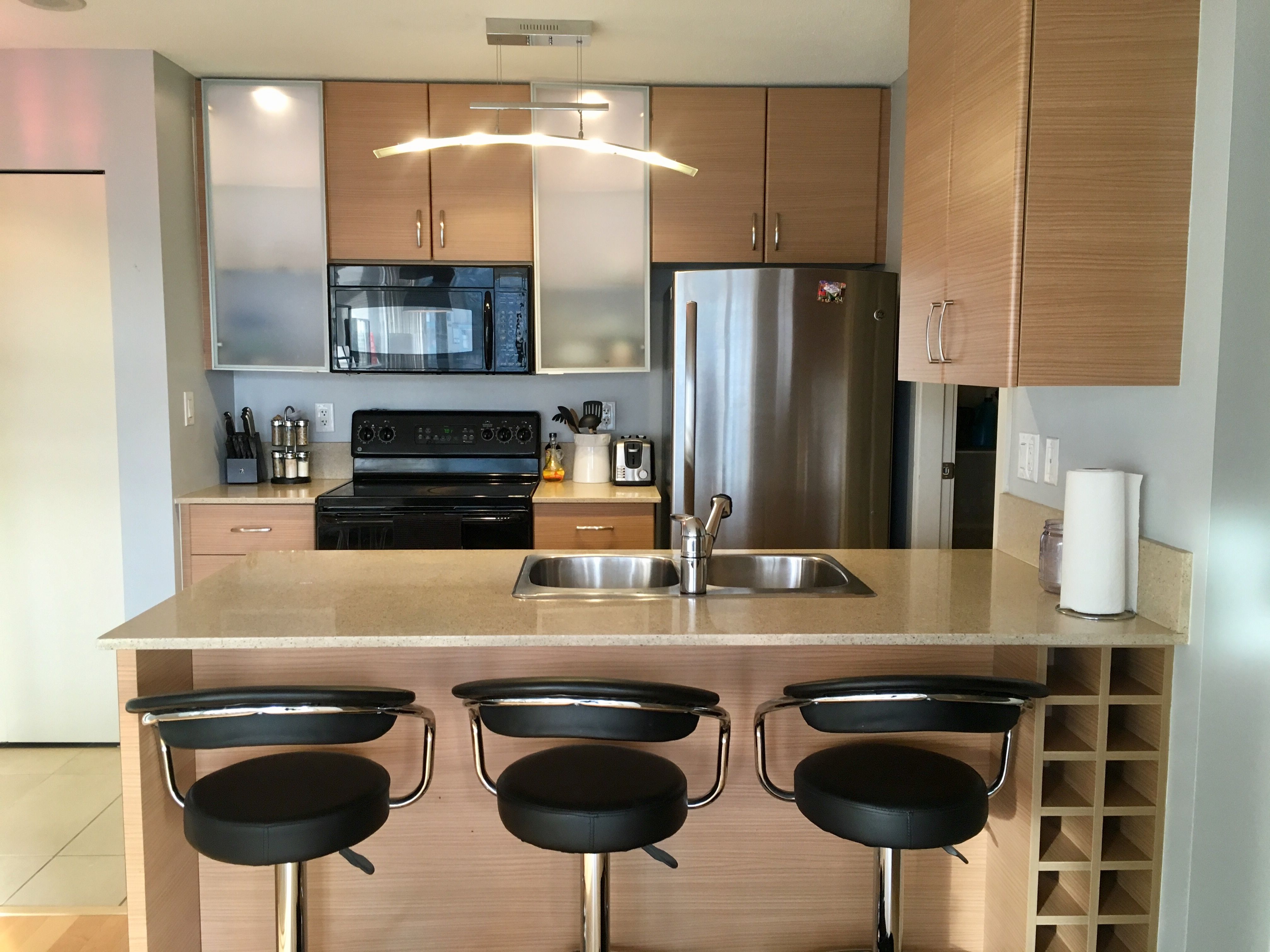 - all furniture as seen in photos: sectional sofa, bed, lamps, side tables, dining table, chairs, coffee table, bar stools