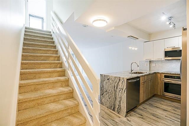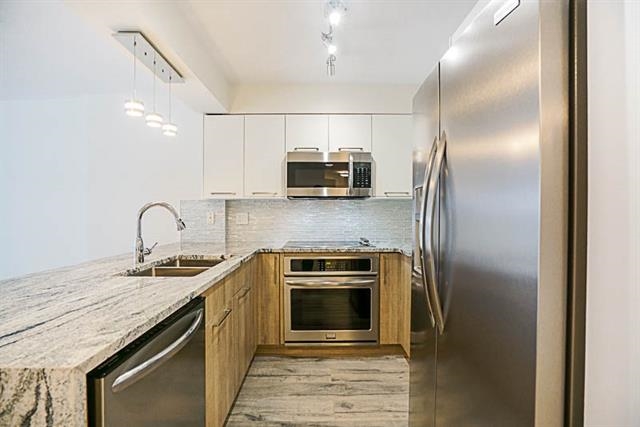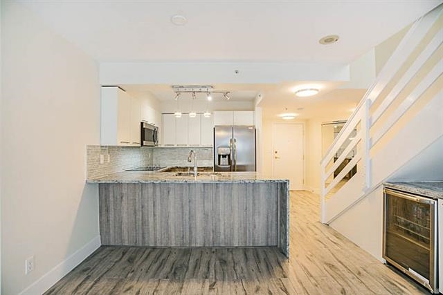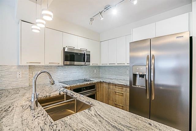 A 2 storey COMPLETELY renovated concrete condo right in the heart of the city! Every detail of this home is new with no expenses spared. High end Frigidaire appliance, new granite counters & cabinets, new tile on fireplace, new roller shades, new flooring, built-in wine fridge, high ceilings and much more than you really need to see to appreciate.This beautiful 2 bed + flex/office, 2 full bath home is open concept, large enough for a family & perfect for entertaining.Upstairs you will find 2 spacious bedrooms each with their own separate large balconies & a city/mountain view. Every amenity & transit is walking distance from this amazing location. 2 PARKING SPOTS!Huge storage locker. Amazing gym facility in building. Don't miss out!