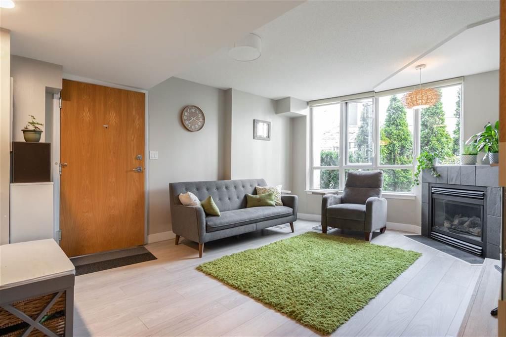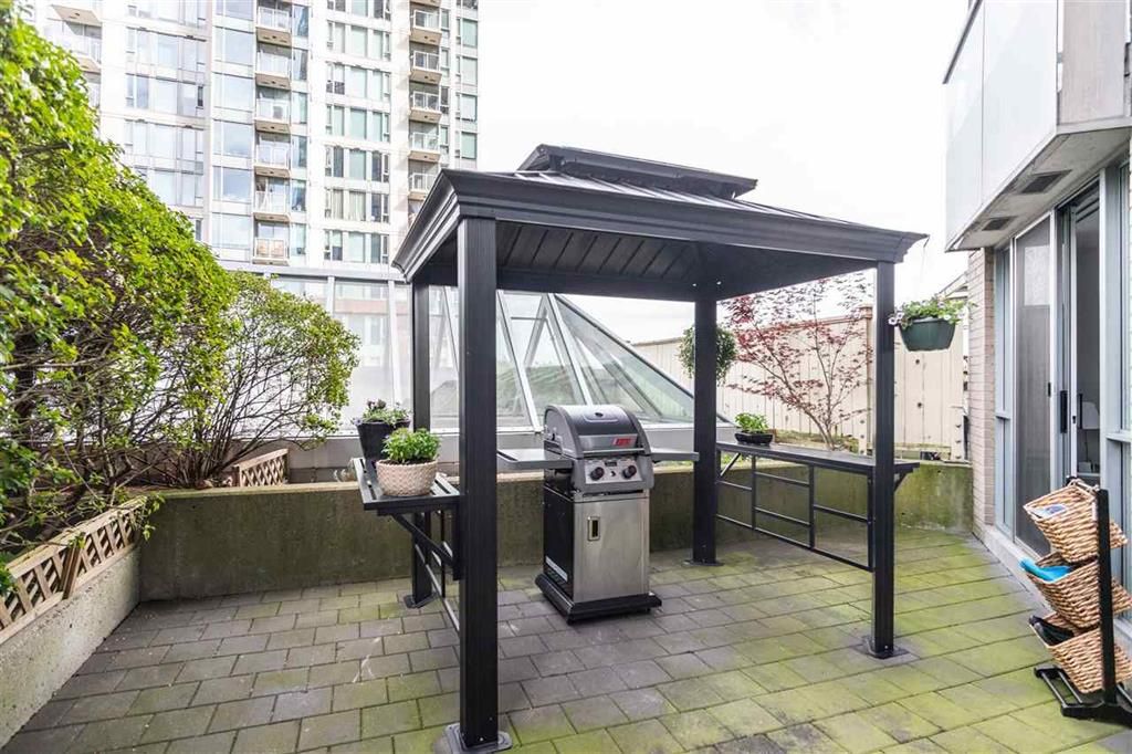 PRIVATE and QUIET 2 bed home featuring HUGE 260sqft outdoor patio ideal for hosting, children and/or dog. Nearly $90K in upgrades including all new full-sized appliances, kitchen cabinetry, both bathrooms, flooring, custom millwork throughout and paint. Cozy home w/ open concept layout and zero wasted space. Plenty of insuite storage w/ the large laundry room/den and bonus TWO external storage lockers. Gas fireplace provides plenty of heat for the main living areas and home is equipped w/ air-conditioning throughout. Amenities include concierge, indoor pool, sauna and exercise centre. Central location being steps to everything including the seawall, Skytrain, restaurants, groceries, services and much more.